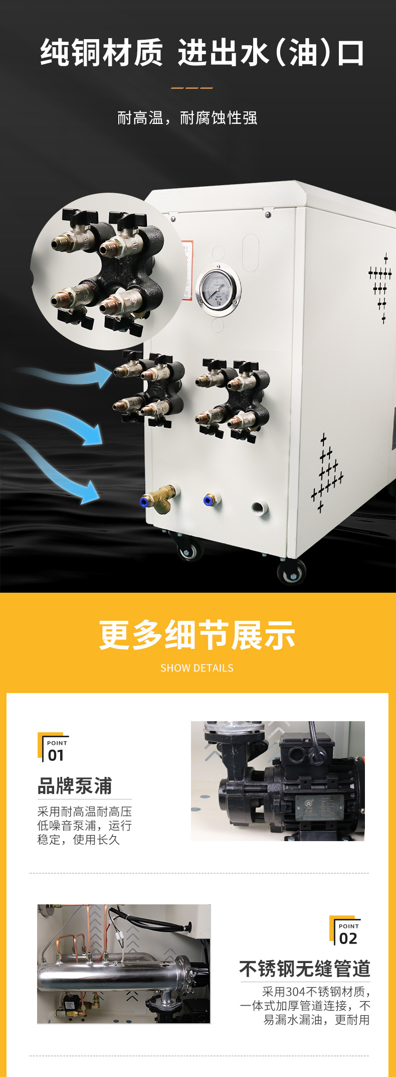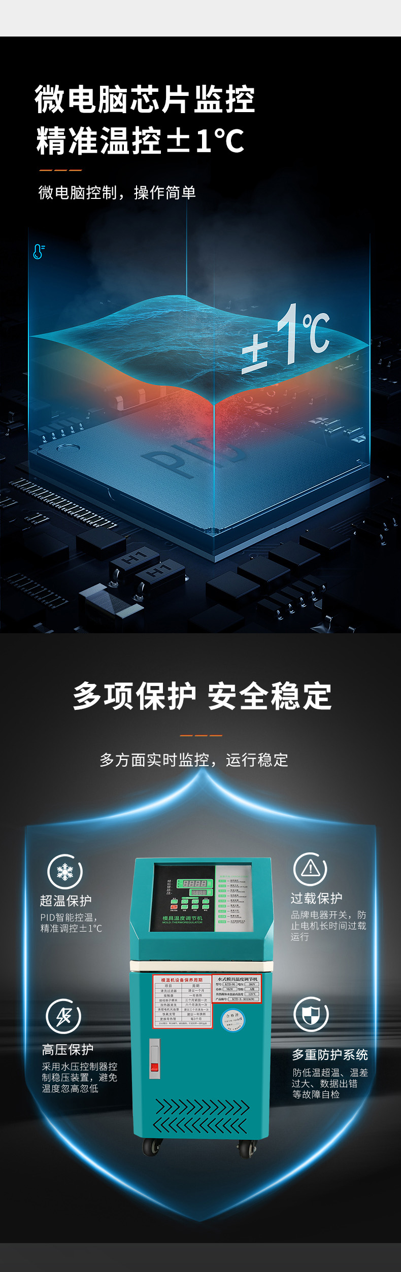在現(xiàn)代化的工廠中,因應(yīng)市場的競爭,節(jié)省人力,提高品質(zhì),降低成本的經(jīng)營策略是刻不容緩的,模溫機(jī)的使用,可使模具預(yù)熱時(shí)間減少,成品表面質(zhì)量提升及可完全自動化生產(chǎn)。提高模具壽命是提高生產(chǎn)力的必要手段。